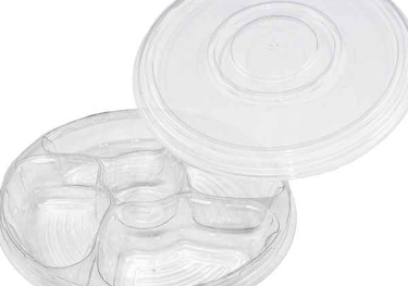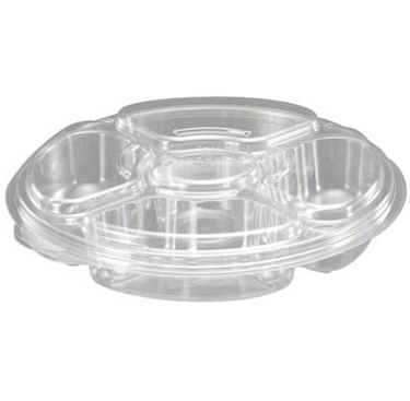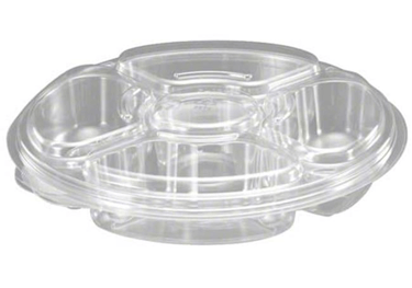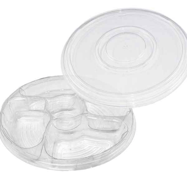 PLATTER TRAY 96 OZ 13" CLEAR 4 COMP WITH CENTER DIP COMBO